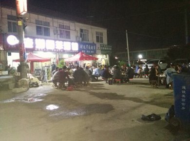 图为从老湖西接受过烧烤培训的金乡加盟店客人就餐场面实景拍摄